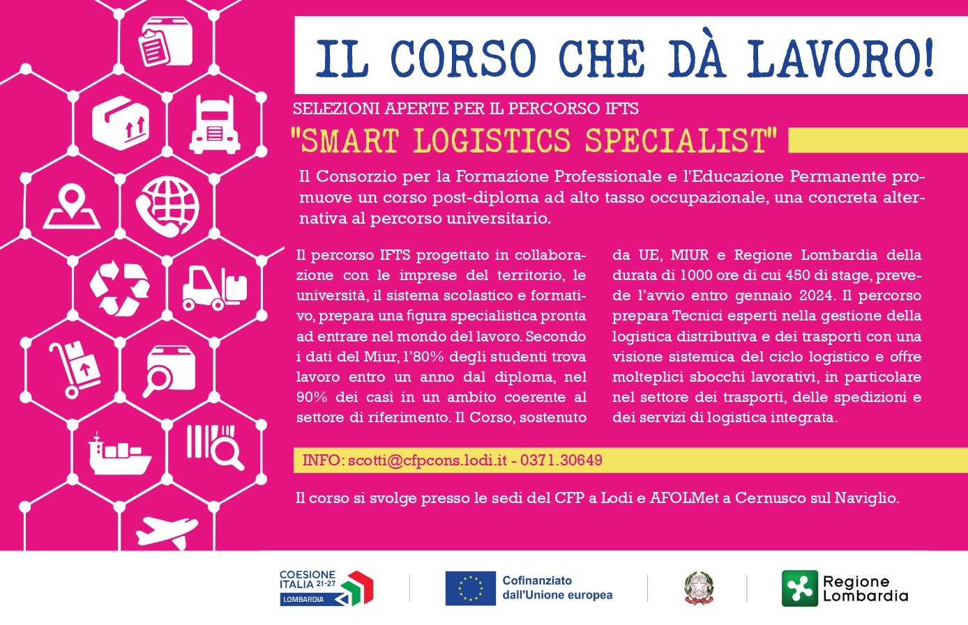 IFTS “Smart Logistics Specialist - Gestione e Ottimizzazione dei Sistemi Logistici e dei Trasporti” è l’unico corso del territorio lodigiano progettato per coloro che vogliono apprendere competenze specialistiche altamente spendibili nel settore della logistica.
